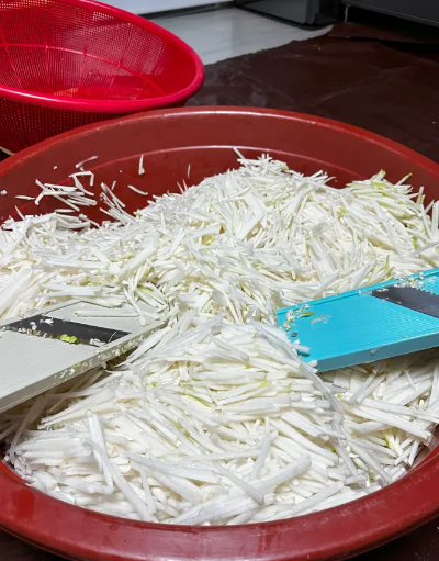 - 채칼 : 채썰기 위한 채칼도 2개 정도 준비합니다. 무딘 채칼은 위험하고 힘도 많이 들어갑니다. 여분으로 하나 더 준비하거나 둘이서 무를 썰면 시간도 절약됩니다.